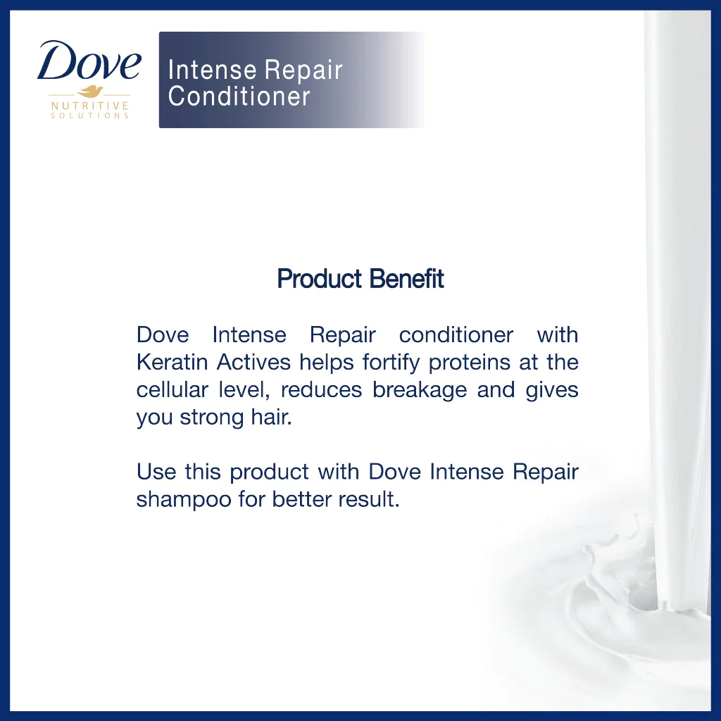 Dove Intense Repair Conditioner repairs the signs of damage to the hair surface and,