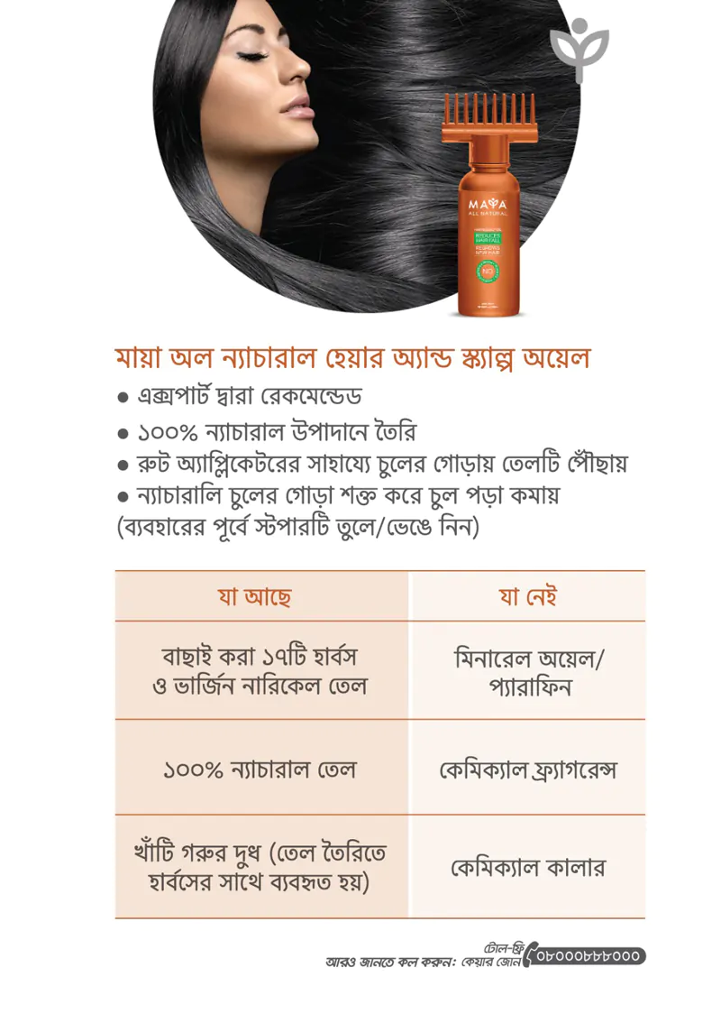 Maya All Natural Hair & Scalp Oil is made of completely Natural Ingredients, free from Artificial Fragrance, Silicones & Mineral Oil. 5000 years old Kshir Pak Vedhi method is used where pure Cow Milk is blended with various Natural Ingredients to prepare this Oil. Maya All Natural Hair & Scalp Oil helps to Reduce Hair Fall & Regrow New Hair.