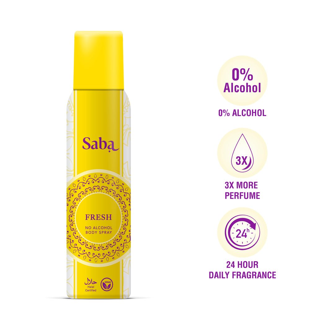 Saba Fresh Perfumed Body Spray Deodorant - Long Lasting Fragrance - Alcohol Free