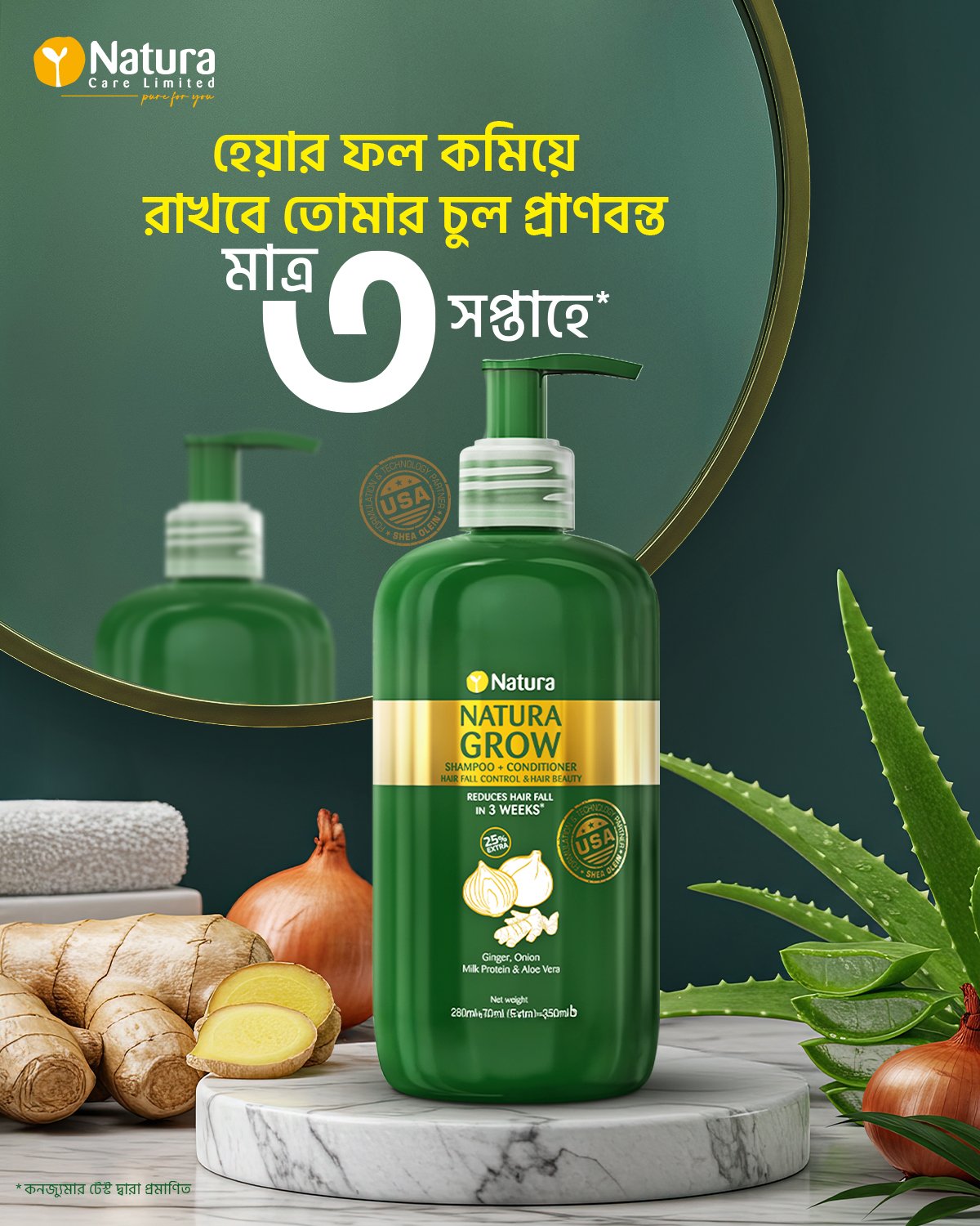 Natura Grow Shampoo is specially formulated to reduce hair fall and strengthen hair with the power of natural active ingredients. Enriched with Ginger Oil, Onion Oil, Aloe Vera, and Milk Protein, this gentle yet effective shampoo nourishes the scalp and conditions hair for a healthier, shinier look.